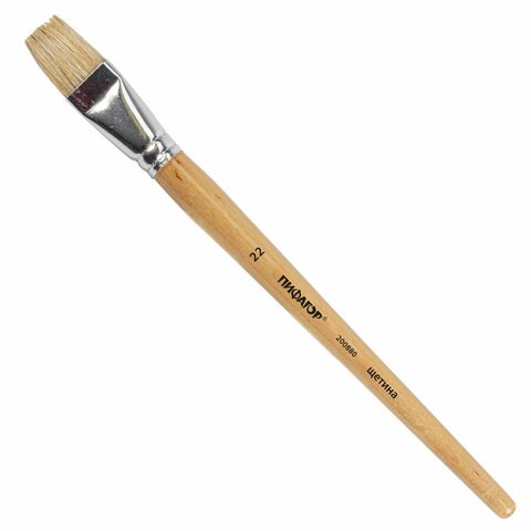 Кисть ПИФАГОР, ЩЕТИНА, плоская, № 22, деревянная лакированная ручка, пакет с подвесом, 200880