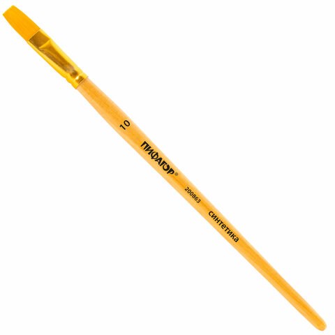 Кисть ПИФАГОР, СИНТЕТИКА, плоская, № 10, деревянная лакированная ручка, с колпачком, пакет с подвесом, 200863