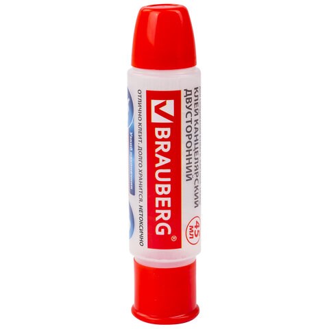 Клей канцелярский двусторонний BRAUBERG, 45 мл, с узким и широким аппликаторами, 227534