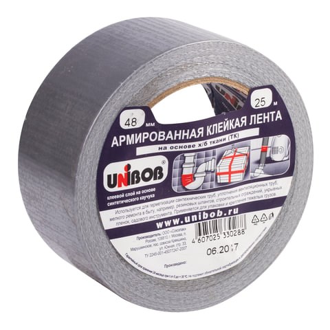 Клейкая лента АРМИРОВАННАЯ 48 мм х 25 м, ТКАНЕВАЯ ОСНОВА, прочная, европодвес, UNIBOB, 29836