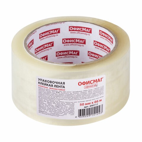 Клейкая лента упаковочная, 50 мм х 66 м, прозрачная, УСИЛЕННАЯ, МОРОЗОСТОЙКАЯ, толщина 50 микрон, ОФИСМАГ, 440111