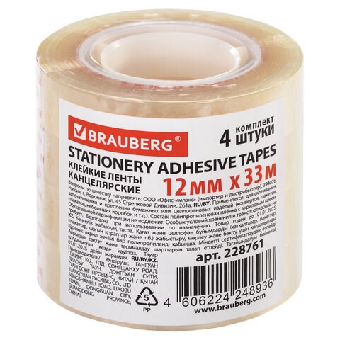 Канцелярская клейкая лента BRAUBERG разработана специально для канцелярских нужд. Широко используется в бытовой, банковской и офисной сфере.