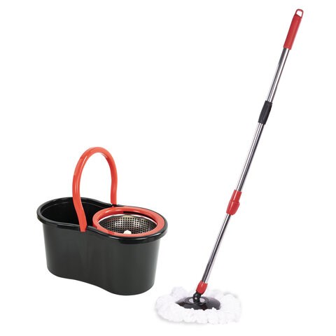 Комплект для уборки: швабра, ведро 7 л/5 л с отжимом центрифуга, 2 насадки, черный, LAIMA, 607487