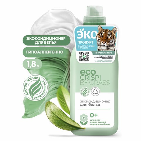 Кондиционер-ополаскиватель для белья без фосфатов биоразлагаемый ЭКО 1,8 л CRISPI by GRASS, 125704