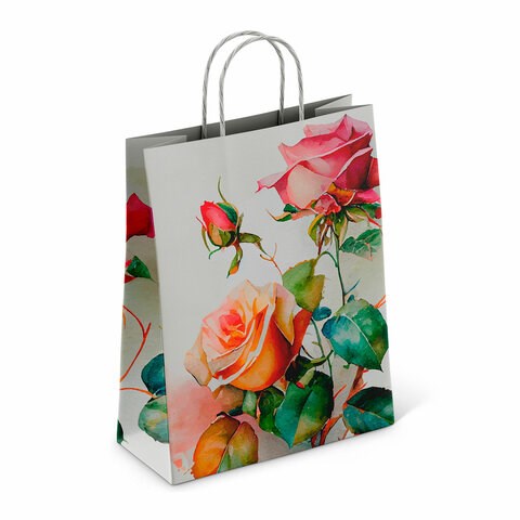 Крафт-пакет бумажный "Розы" 22х12х25 см, с кручеными ручками, плотность 100 г/м2, белый, 114164
