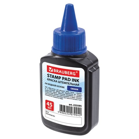 Краска штемпельная BRAUBERG, синяя, 45 мл, на водной основе, 223595