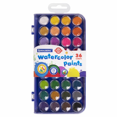 Краски акварельные BRAUBERG "PREMIUM" 36 цветов, круглые кюветы 23 мм, пенал, 191746