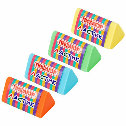 Ластик трехгранный ПИФАГОР "ЭНИКИ-БЕНИКИ", 35х18х18 мм, картонный держатель, цвета ассорти, 272668