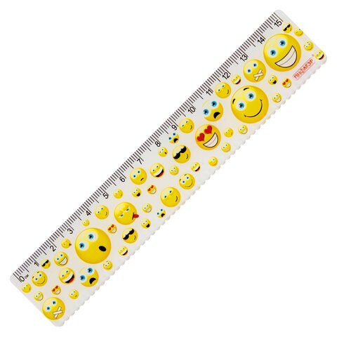 Линейка пластиковая 15 см, ПИФАГОР "Смайлики", цветная печать, с волнистым краем, европодвес, 210636