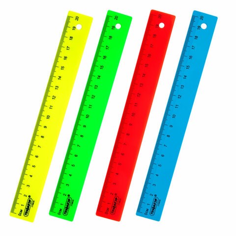 Линейка пластиковая 20 см, ПИФАГОР, непрозрачная, неоновая, ассорти, 210830