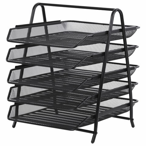 Лоток горизонтальный для бумаг BRAUBERG "Germanium", 5 секций, 370х355х295 мм, металл, черный, 237971