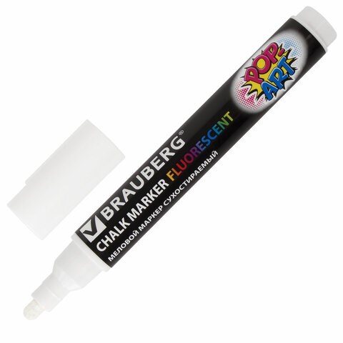 Стираемый меловой маркер BRAUBERG "POP-ART" - оригинальный инструмент для оформления различных зон помещений. Идеален для использования на школьных занятиях и детского творчества.