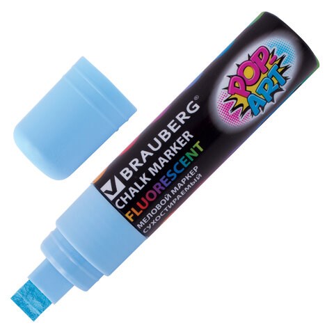Маркер меловой "POP-ART" ГОЛУБОЙ, 15 мм, стираемый, для гладких поверхностей, BRAUBERG, 151543