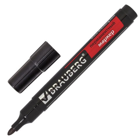 Маркер перманентный BRAUBERG "Contract", ЧЕРНЫЙ, круглый наконечник, 3 мм, 150465