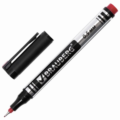 Маркер перманентный BRAUBERG "Jet", КРАСНЫЙ, супертонкий металлический наконечник 0,5 мм, 150509