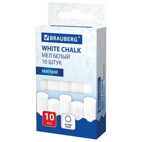 Мел белый круглый мягкий, 10 штук, BRAUBERG, картонная упаковка, европодвес, 272766