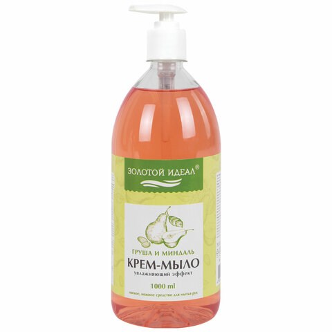 Мыло-крем жидкое 1 л, ЗОЛОТОЙ ИДЕАЛ "Груша и миндаль", дозатор, 609426