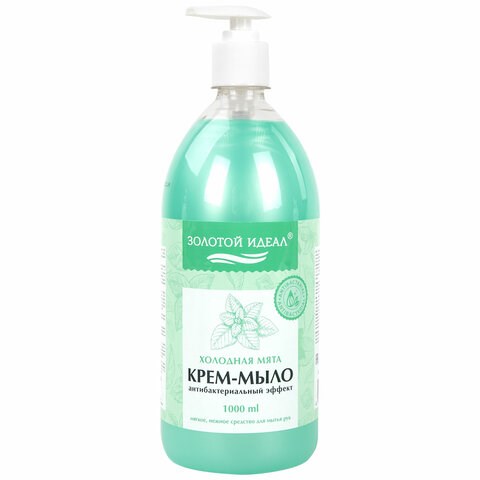 Мыло-крем жидкое с АНТИБАКТЕРИАЛЬНЫМ ЭФФЕКТОМ 1 л ЗОЛОТОЙ ИДЕАЛ "Холодная мята", дозатор, 608285