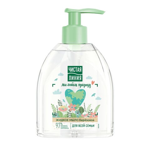 Мыло жидкое 520 мл, ЧИСТАЯ ЛИНИЯ "Березовое", дозатор, для всей семьи