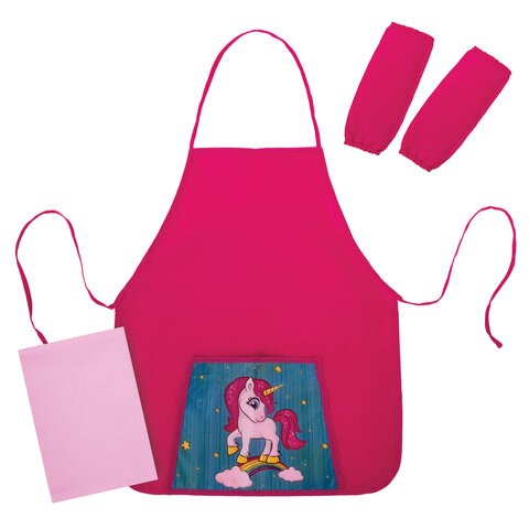 Набор для уроков труда ЮНЛАНДИЯ, клеенка ПВХ, накидка фартук с нарукавниками, "Neon unicorn", 270197