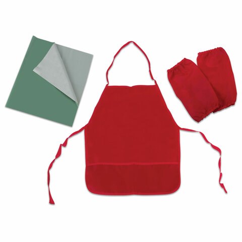 Набор для уроков труда ПИФАГОР, клеенка ПВХ, накидка фартук с нарукавниками, красная, 227061