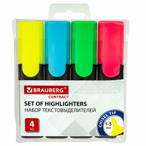Набор текстовыделителей BRAUBERG 4 шт., АССОРТИ, "Contract", линия 1-5 мм, 150394