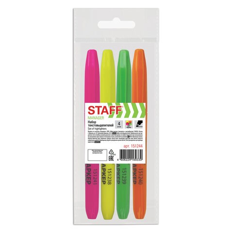 Набор текстовыделителей STAFF "Manager" HL-238, 4 шт., АССОРТИ, линия 1-3 мм, 151244