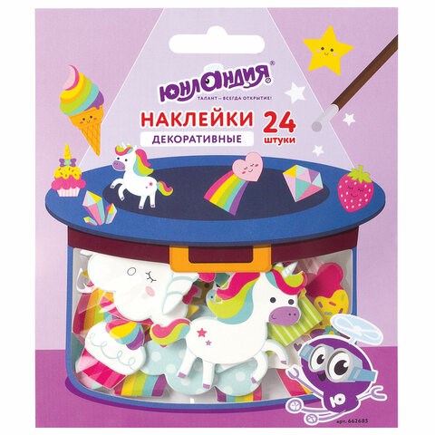 Наклейки из EVA "Единорог и радуга", 24 штуки, ассорти, ЮНЛАНДИЯ, 662685