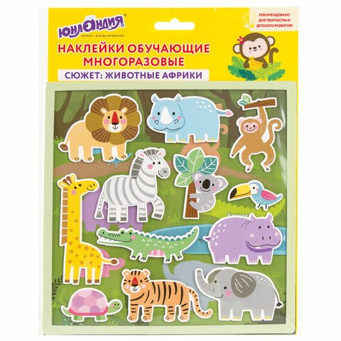 Наклейки обучающие тематические из EVA "Животные Африки", 20х40 см, многоразовые, ЮНЛАНДИЯ, 663770