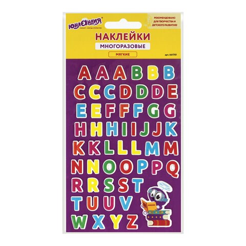 Наклейки зефирные "Английский алфавит", многоразовые, 10х15 см, ЮНЛАНДИЯ, 661781