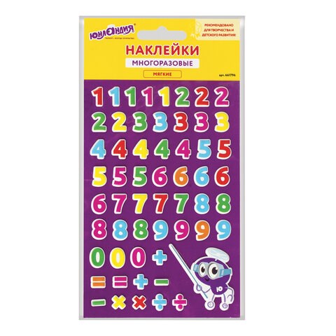 Наклейки зефирные "Цифры", многоразовые, 10х15 см, ЮНЛАНДИЯ, 661796