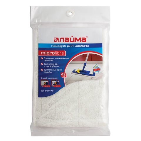 Насадка МОП плоская для швабры/держателя 42 см, уши/карманы (ТИП У/К), микрофибра, упаковка, LAIMA, 601479
