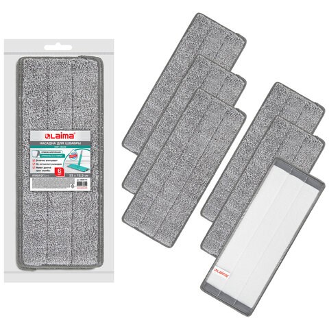 Насадки МОП для швабры (кармашки c 2-х сторон) КОМПЛЕКТ 6 шт., микрофибра, 33х12,5см, LAIMA, 608144
