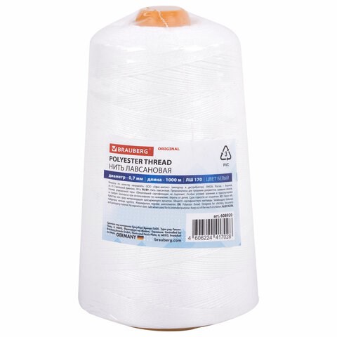 Лавсановая нить BRAUBERG ORIGINAL применяется для прошивки и брошюровки документов в банках и офисах. Подходит для всех типов ручных мешкозашивочных машинок.