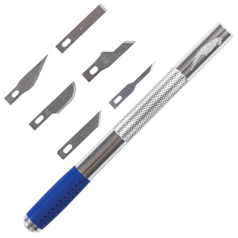 Макетный нож предназначен для для аккуратной и точной работы по бумаге, пластику, дереву и прочим материалам. Для безопасного извлечения лезвий из футляра необходимо использовать магнит, который встроен в тыльную сторону рукоятки.