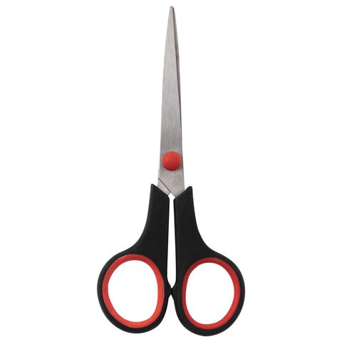 Ножницы STAFF EVERYDAY, 150 мм, бюджет, резиновые вставки, черно-красные, ПВХ чехол, 237497.