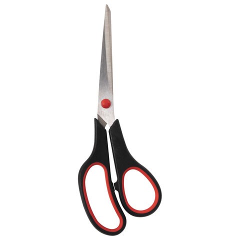 Ножницы STAFF EVERYDAY, 215 мм, бюджет, резиновые вставки, черно-красные, ПВХ чехол, 237500