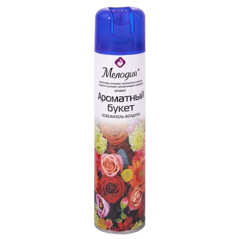 Освежитель воздуха МЕЛОДИЯ "Ароматный букет" быстро и эффективно устраняет неприятные запахи и освежает воздух в жилых и бытовых помещениях. Имеет приятный стойкий аромат, который надолго наполнит помещение свежестью.