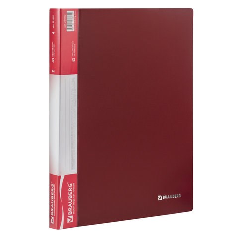 Папка 40 вкладышей BRAUBERG стандарт, красная, 0,7 мм, 221602