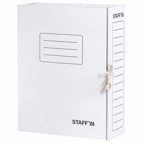 Папка архивная с завязками А4 (325х250 мм), 100 мм, до 900 листов, микрогофрокартон, БЕЛАЯ, STAFF, 128874