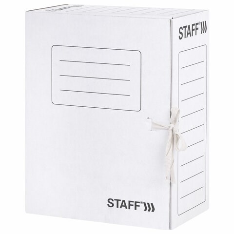 Папка архивная с завязками А4 (325х250 мм), 150 мм, до 1400 листов, микрогофрокартон, БЕЛАЯ, STAFF, 128875