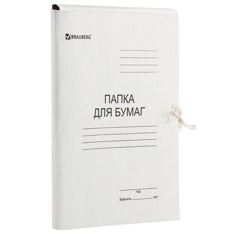 Папка для бумаг BRAUBERG на завязках с цельновырубными клапанами применяется для хранения бумаг и оперативной работы с документами сотрудниками госучреждений, общественных организаций, торговых предприятий и др.