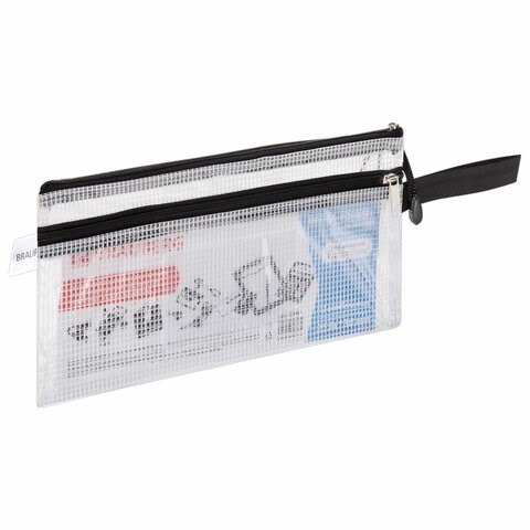 Папка-конверт на молнии МАЛОГО ФОРМАТА (255х130 мм), 2 отдел, ПВХ, прозрачная, 0,3 мм, BRAUBERG "Solid", 223891