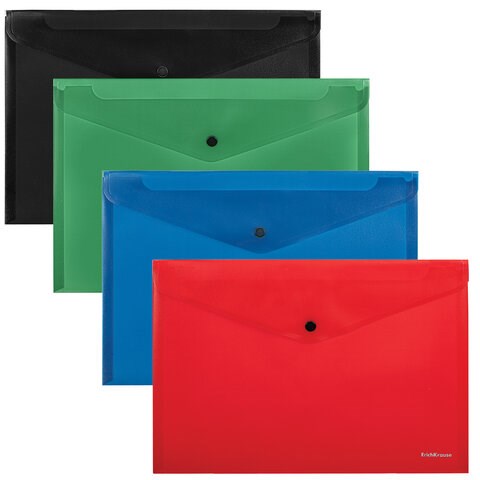 Папка-конверт на кнопке ERICH KRAUSE "Classic" А4 из высококачественного непрозрачного пластика с текстурой поверхности "апельсиновая корка", на которой не видно отпечатков пальцев и мелких царапин.