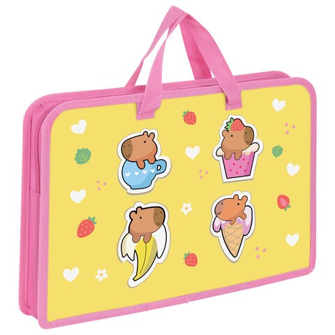 Папка на молнии с ручками ЮНЛАНДИЯ А4, 1 отделение, пластик, ширина 45 мм, "Capybaras", 272149