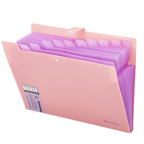 Папка-органайзер на кнопке 12 отделений, BRAUBERG "Extra", А4, персиковая с лавандовым, 271931