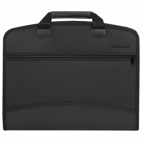 Папка-портфель пластиковая BRAUBERG А4+ (375х305х60 мм), 4 отделения, 2 кармана, на молнии, черный, 225169