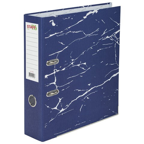 Папка-регистратор STAFF "Profit" с мраморным покрытием, 75 мм, с уголком, синяя, СЪЕМНЫЙ МЕХАНИЗМ, 272010