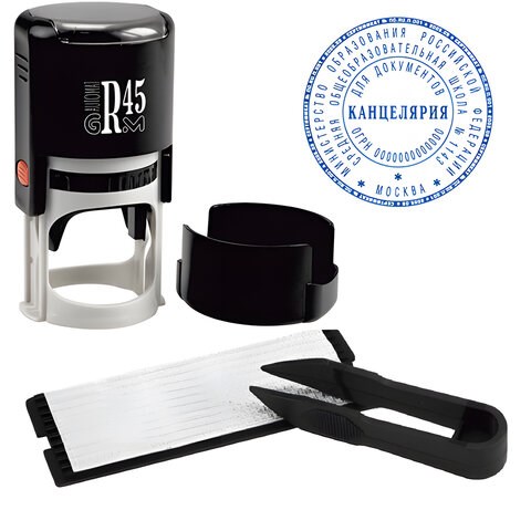 Печать самонаборная 2,5 круга, оттиск D=45 мм синий GRM 46045, крышка, КАССА В КОМПЛЕКТЕ, 111000034