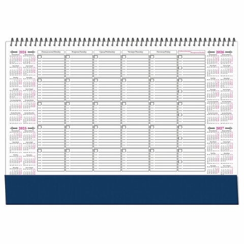 Планинг-ежемесячник настольный недатированный предназначен для ведения записей. На каждом листе – графы для всех дней текущего месяца, календарная сетка на четыре года и поле для заметок. Подложка выполнена из плотного картона.